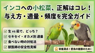 インコにブロッコリーを与える際の「生でいいの?」「茎は食べる?」という疑問を解決。栄養豊富な野菜ですが、ゴイトロゲンのリスクやセキセイインコ・オカメインコ別の注意点、正しい茹で方や頻度について詳しく解説します。安全に与えるための必須ガイドです。