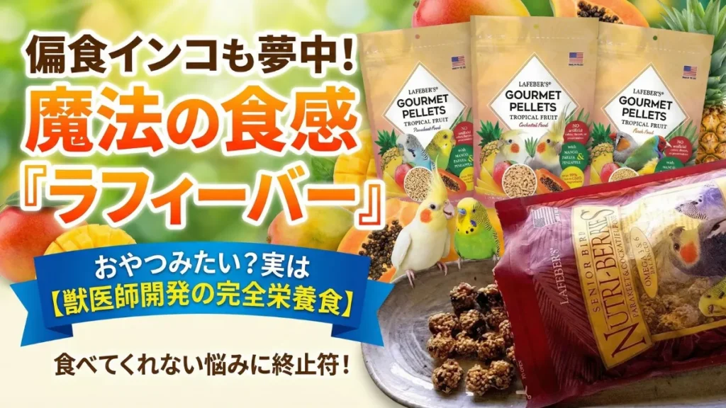 インコがペレットを食べない悩みに終止符!ラフィーバーはおやつに見えますが、実は獣医師開発の完全栄養食です。偏食克服のための「黄金の切り替えステップ」や、グルメペレット・ニュートリベリーの選び方を徹底解説。「これなら食べた」の口コミが続出する理由に迫ります。