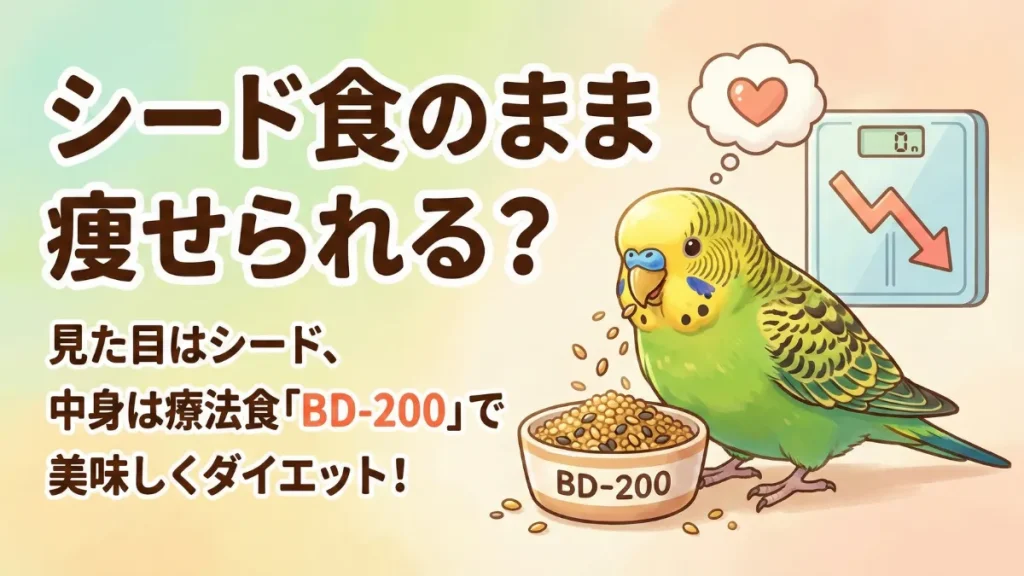 鳥用プリスクリプションダイエット(BD-200)の口コミと効果を徹底解説。「シードしか食べない」愛鳥でも無理なくダイエットできる低脂肪フードです。ボレー粉不使用のメリットや、楽天での購入方法も紹介します。