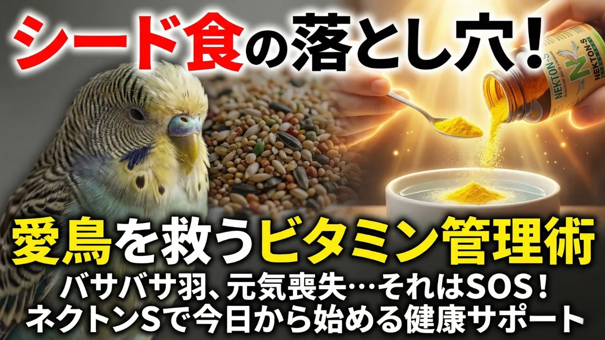 愛鳥が満足そうに食べているからと安心せず、食事内容を客観的に見直すことが大切です。見た目はふっくらしていても、内側では深刻なビタミン不足が進行している可能性があるからです。こうしたリスクを補完するために、ネクトンSを日常的に活用しましょう。