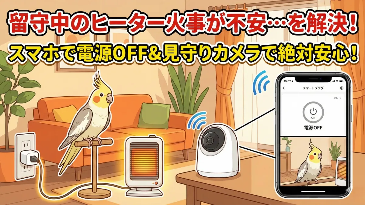 まずはホコリ掃除とコード保護という基本を徹底し、物理的な火種をゼロにする。その上で、スマートプラグと見守りカメラを導入すれば、外出先からでもインコの様子を見守り、危険があればすぐに電源を切ることができます。「何かあったらどうしよう」と悩み続けるよりも、数千円の投資で「いつでも管理できる安心」を手に入れてください。
