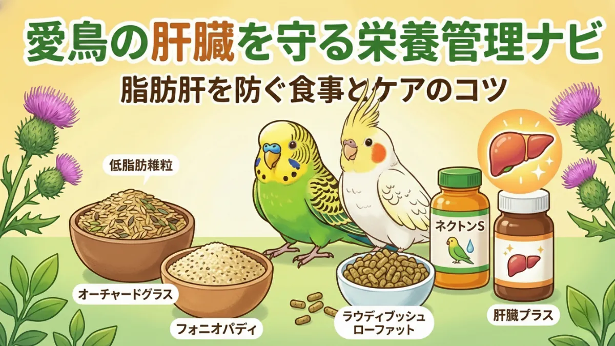 インコの肝臓ケアは、一度にすべてを変えるよりも、まず「高脂肪なものを抜く」「良い成分を足す」というシンプルな習慣から始めるのがコツです。