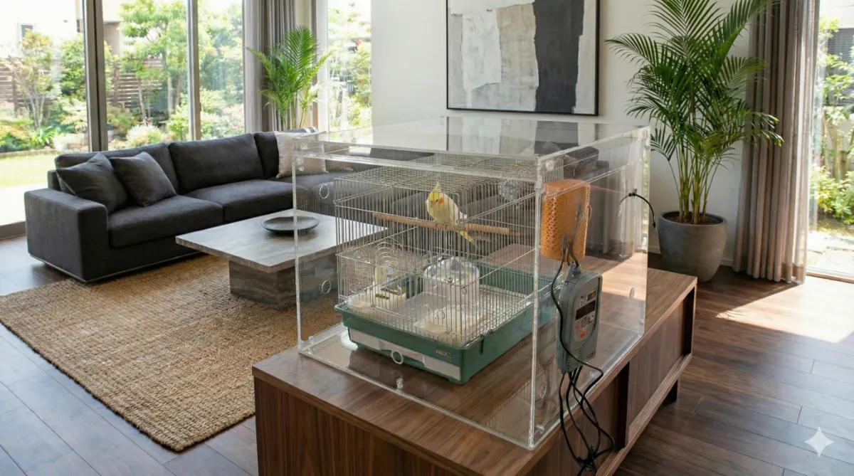 アクリルケースを使う場合も、換気は非常に重要です。密閉性が高い分、酸欠のリスクも高まります。詳しくは鳥のアクリルケースで酸欠は起こる?をご覧ください。