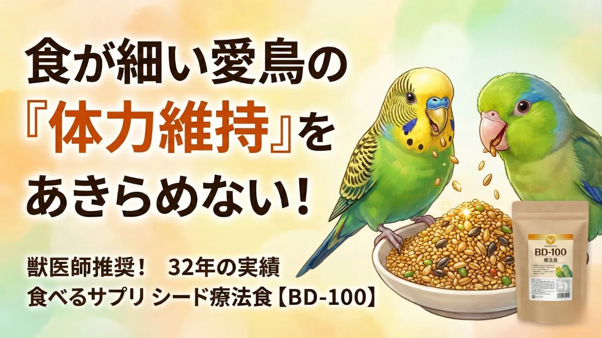 「うちはまだ若いし、元気だから療法食なんて必要ない」と思っていませんか?実は、元気なうちにこそBD-100のような「信頼できる高栄養食」の味を覚えさせておくことが、愛鳥の命を守る保険になります。