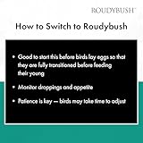 シードからペレットへの切り替えは、焦らず段階的に行うことが成功の鍵です。ラウディブッシュは無着色・無香料のため、最初は警戒する鳥もいますが、正しい方法で根気よく続ければ、ほとんどの鳥が受け入れてくれます。