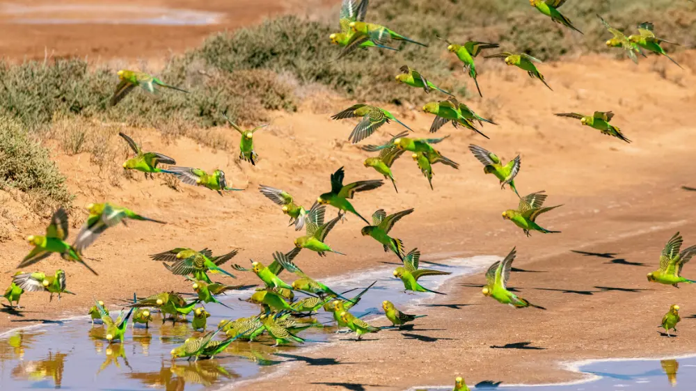 セキセイインコの平均寿命。飼育下の健康なインコが日光浴を楽しむ様子。