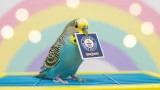 セキセイインコの寿命に関するよくある質問。疑問符の前で首をかしげるインコ。