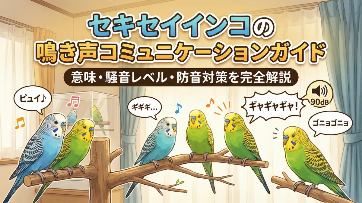 セキセイインコの鳴き声は、単なる「音」ではなく、愛鳥からのメッセージです。「ピュイ」という嬉しさの声、「ギギギ」という不満の声、そして「ギャギャギャ」という90dBの呼び鳴き——これらすべてに意味があり、愛鳥の気持ちや健康状態を知る重要な手がかりとなります。